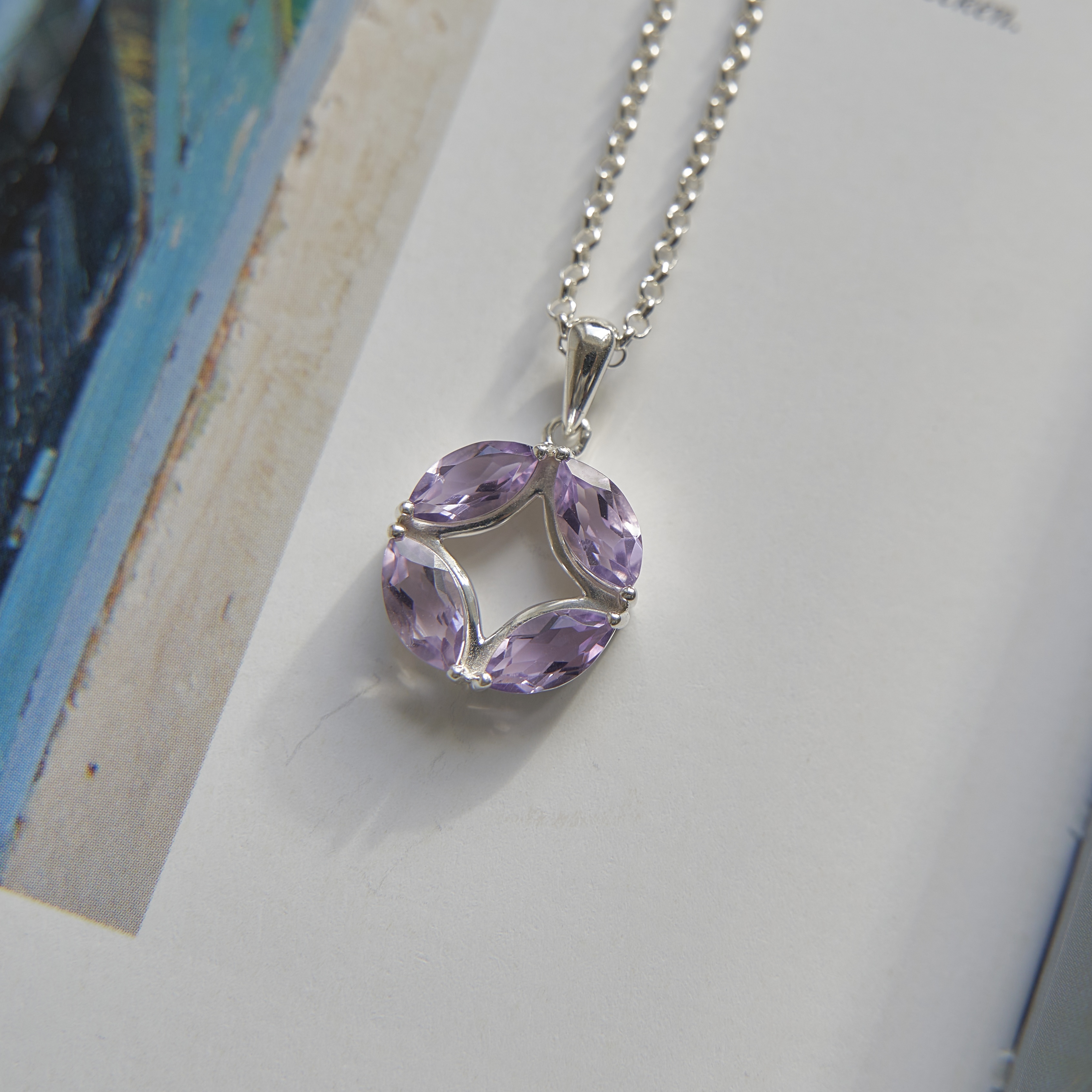 Этот элегантный кулон в форме круга состоит из четырех камней с огранкой маркиз. Такая огранка по форме напоминает лодочку или романтичную улыбку маркизы, кому как больше нравится. Размер каждого камушка здесь 8*4 мм. А длина цепочки - 60 см.