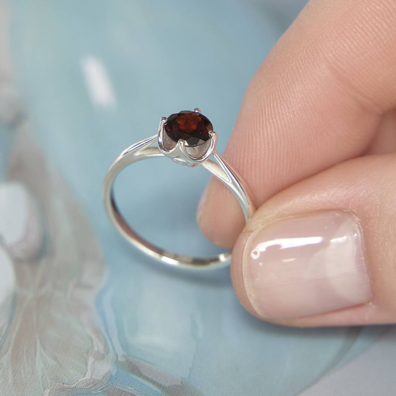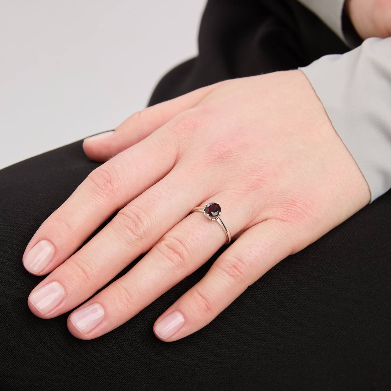 Заметное кольцо с крупным гранатом в огранке «Круг». Это очень удобное и эстетичное кольцо, продуманное до мелочей. Закрепка и высота камня, ощущение на руке, размер крапанов и самого граната (6*6 мм) - все сделано так, чтобы носить кольцо каждый день.