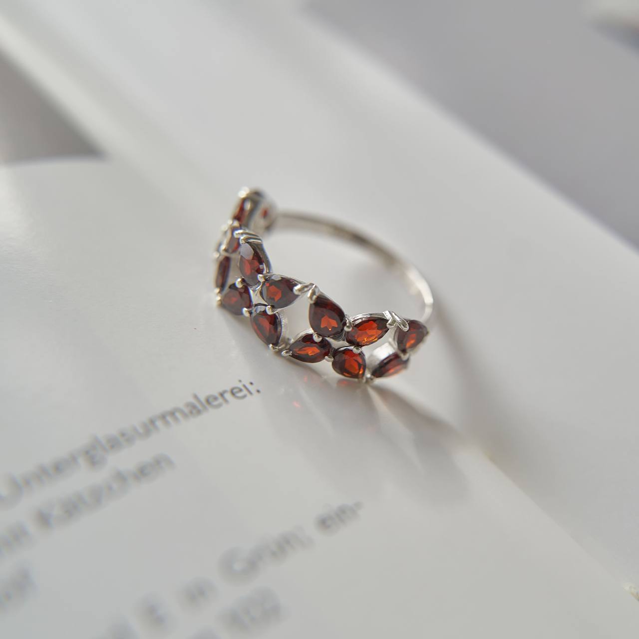 Одно из самых нарядных и эффектных украшений коллекции. Гранаты ловят свет и буквально искрятся красивым винным блеском, а благодаря продуманным деталям, колечко удобно сидит, не цепляется и мягко чувствуется на руке. Коллекция Principessa - это итальянская утонченность и легкость. Все камни здесь работают «на просвет», а Lusso, в переводе с итальянского, означает «роскошь».