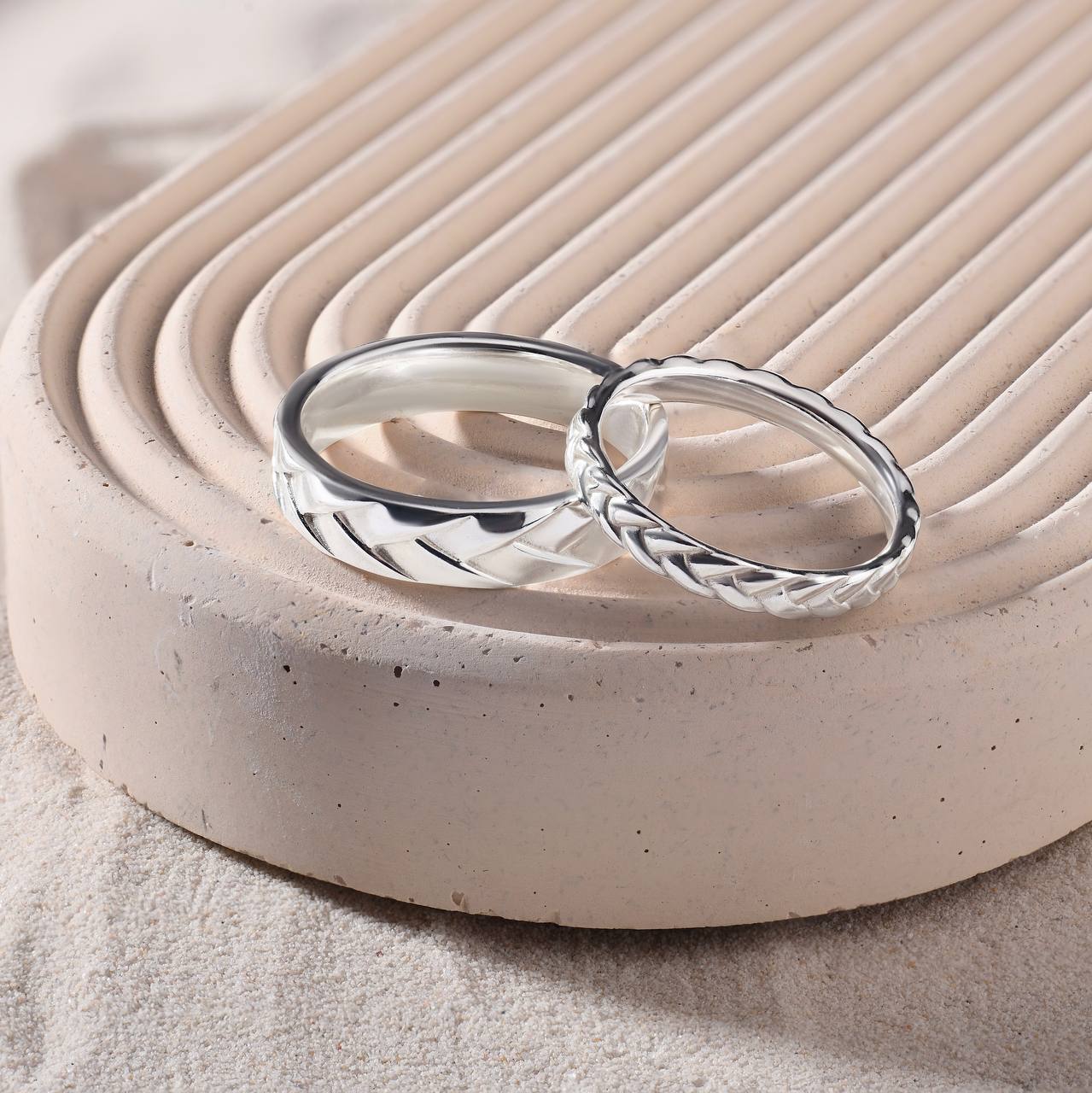 Аккуратная косичка толщиной всего 2,7 мм. Отлично подойдет в комбинацию к уже существующим колечкам - оно не будет перетягивать внимание на себя, однако, благодаря красивому рельефу и бликам, добавит в комбинацию игривый многослойный оттенок.