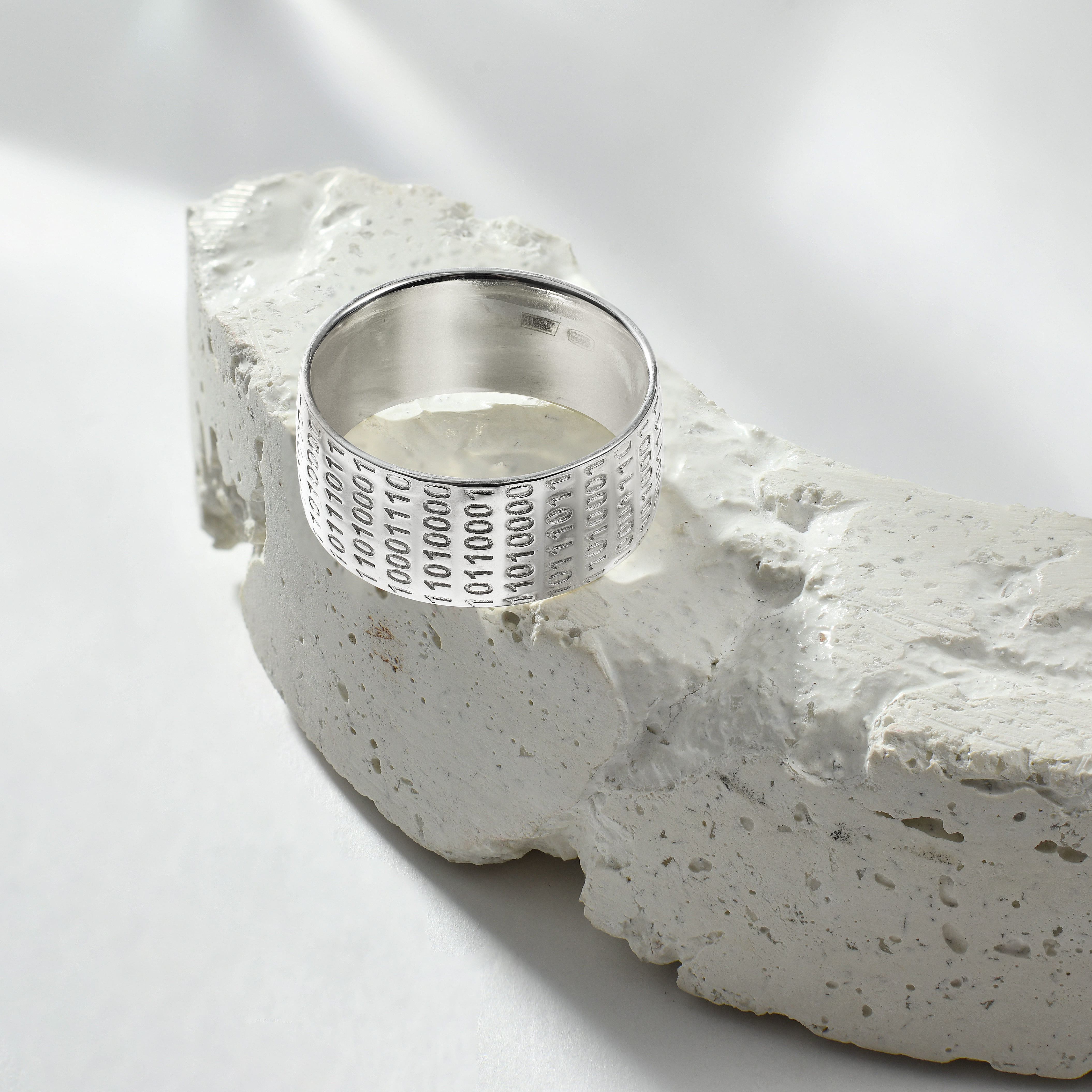 Это кольцо-шифр с надписью, где бинарным кодом зашифрованы такие важные слова как «я тебя люблю».