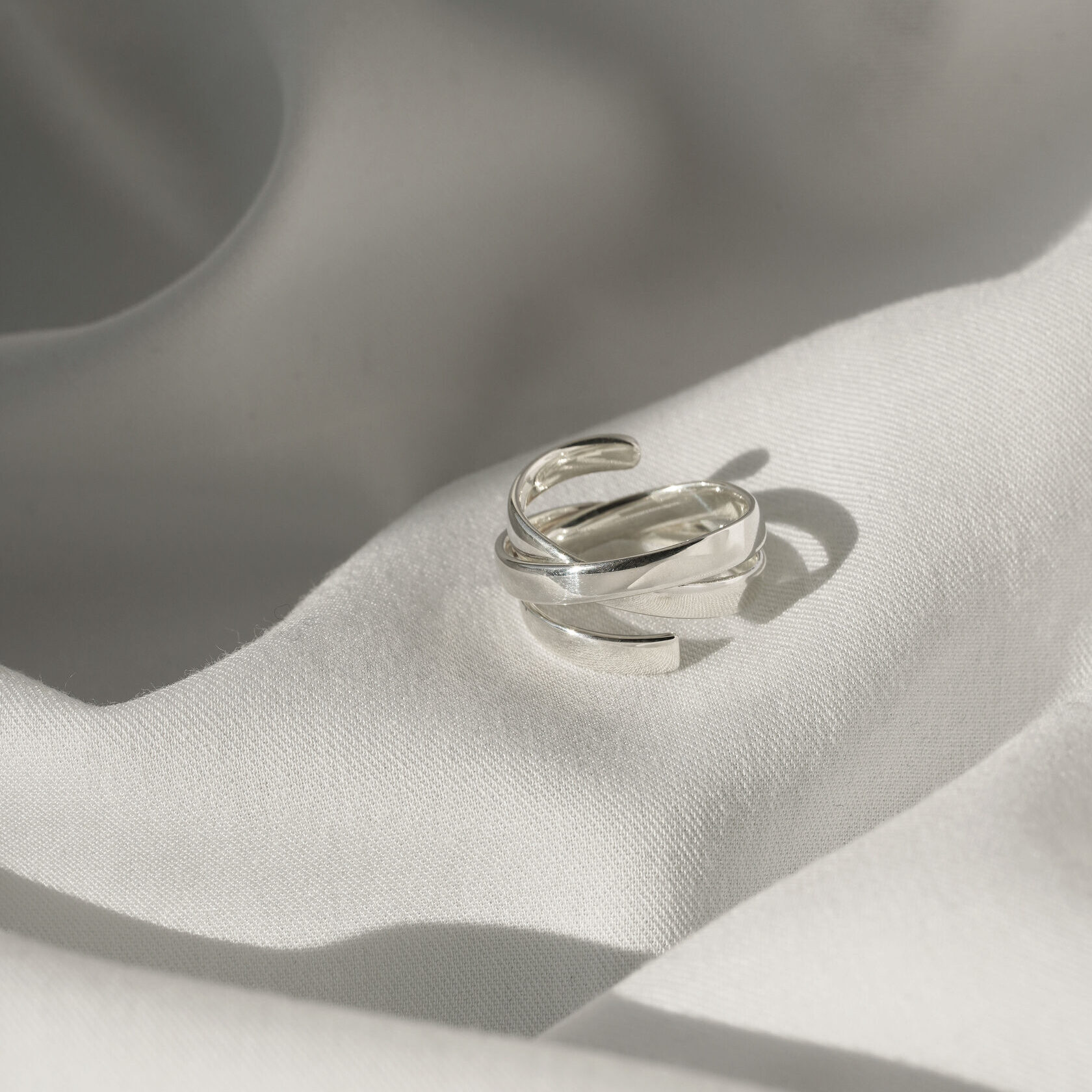 Каждое отдельное колечко этой модели завязывается вручную из ленты серебра и нигде не спаивается. Благодаря этому оно максимально эластично и приятно пружинит, обеспечивая максимальный комфорт.