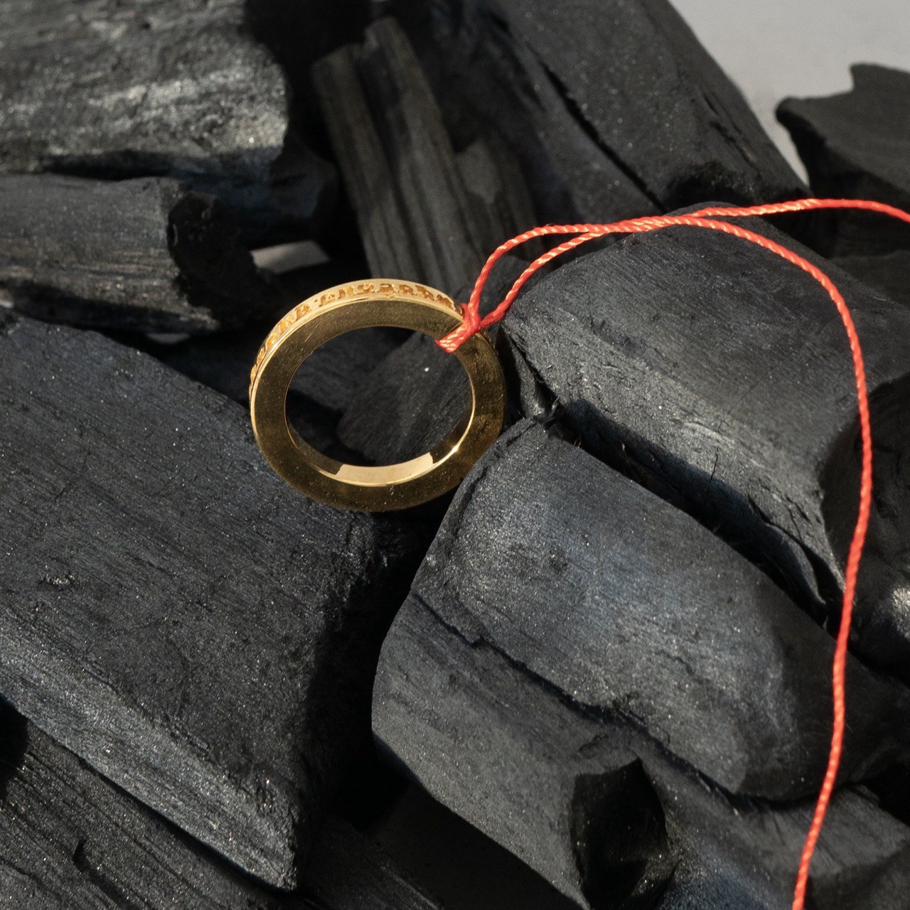 C гравировкой и надписью - защитной мантрой, идущей по кругу кольца.
