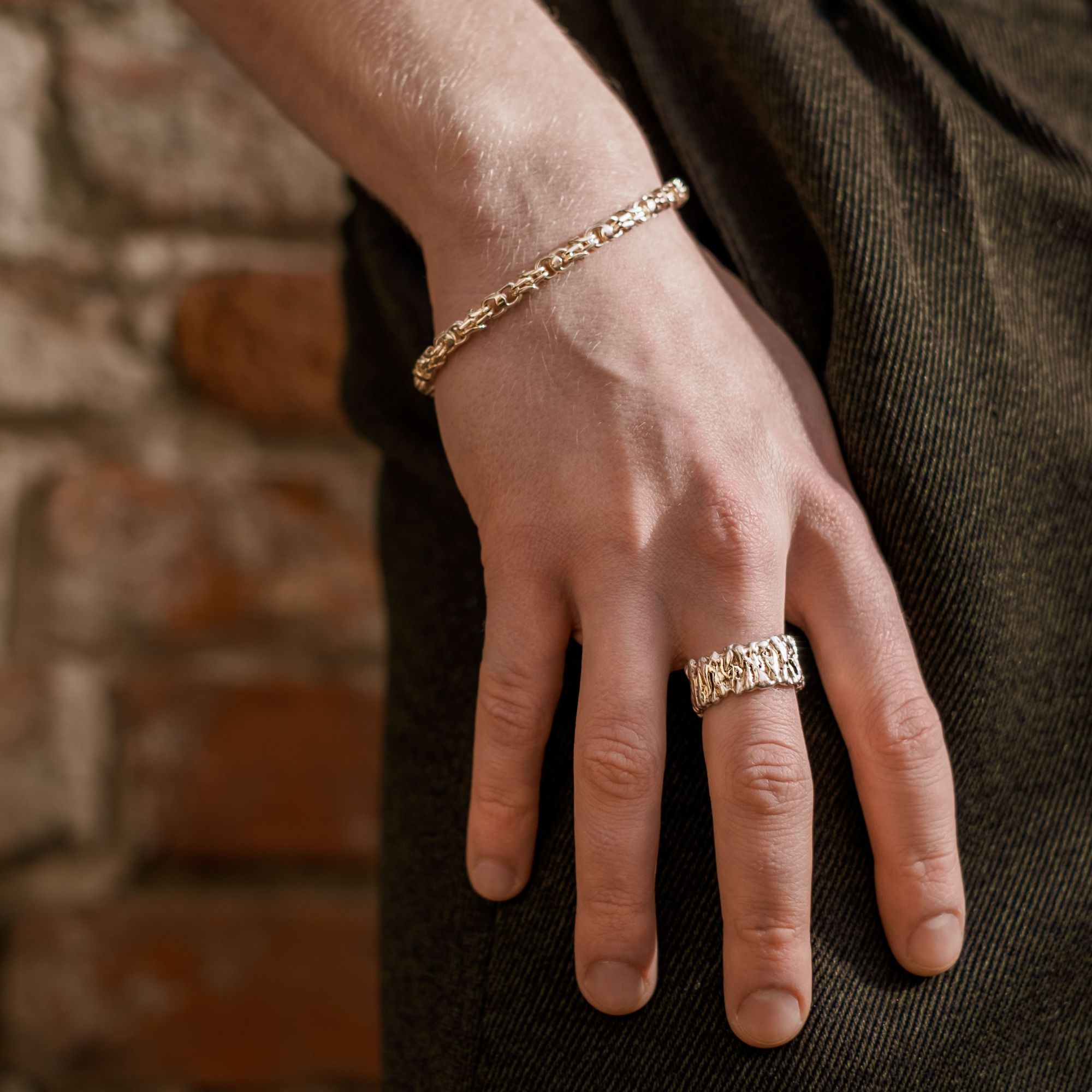 Массивное серебряное кольцо обтекаемой формы, без вставок. Ощутимое, яркое, живое. Будто маленькие бриллиантовые капельки искрятся на его глянцевой поверхности. Или это солнечные блики в игривых морских волнах? Широкое и объемное, оно смотрится нетривиально, а его фактура смоделирована полностью вручную.