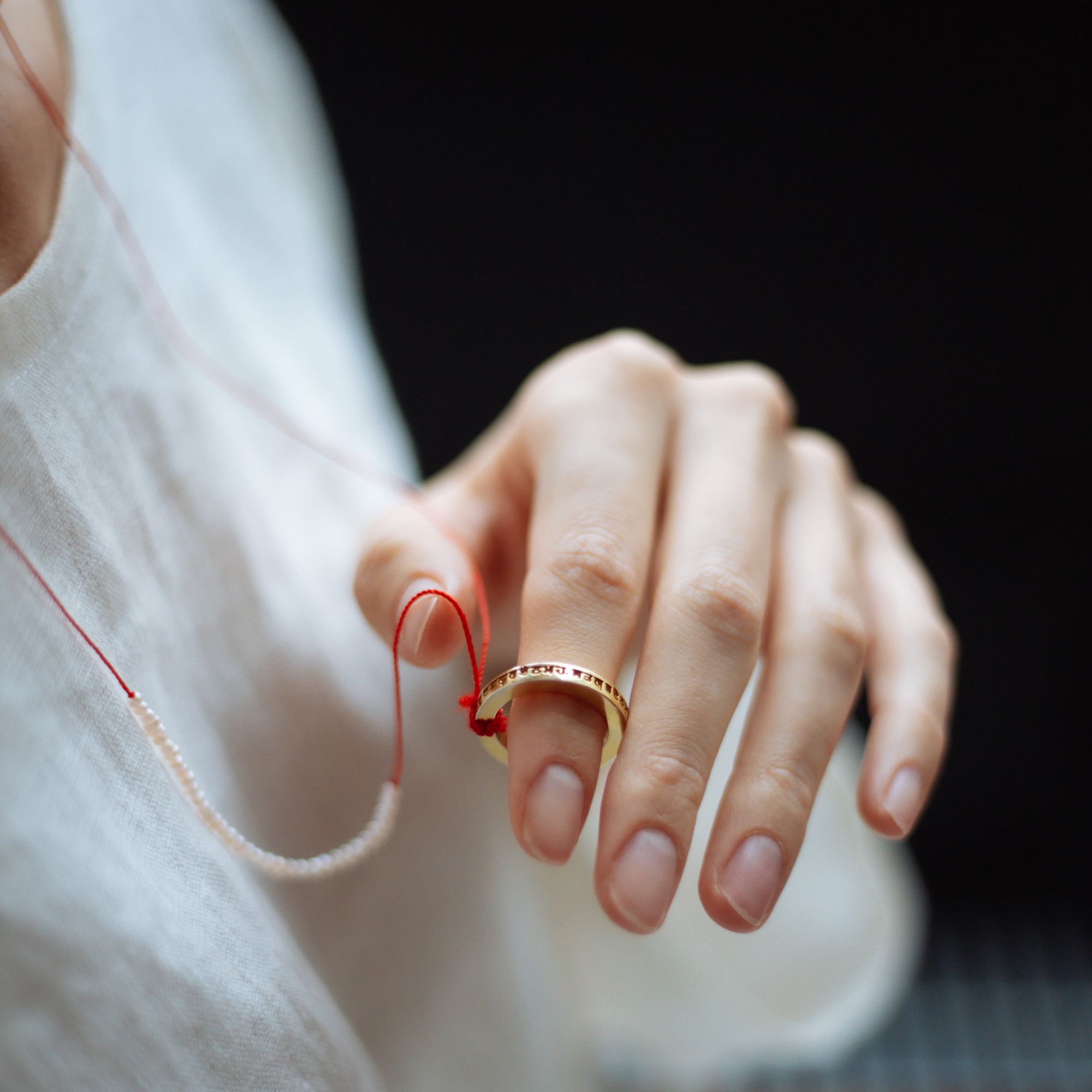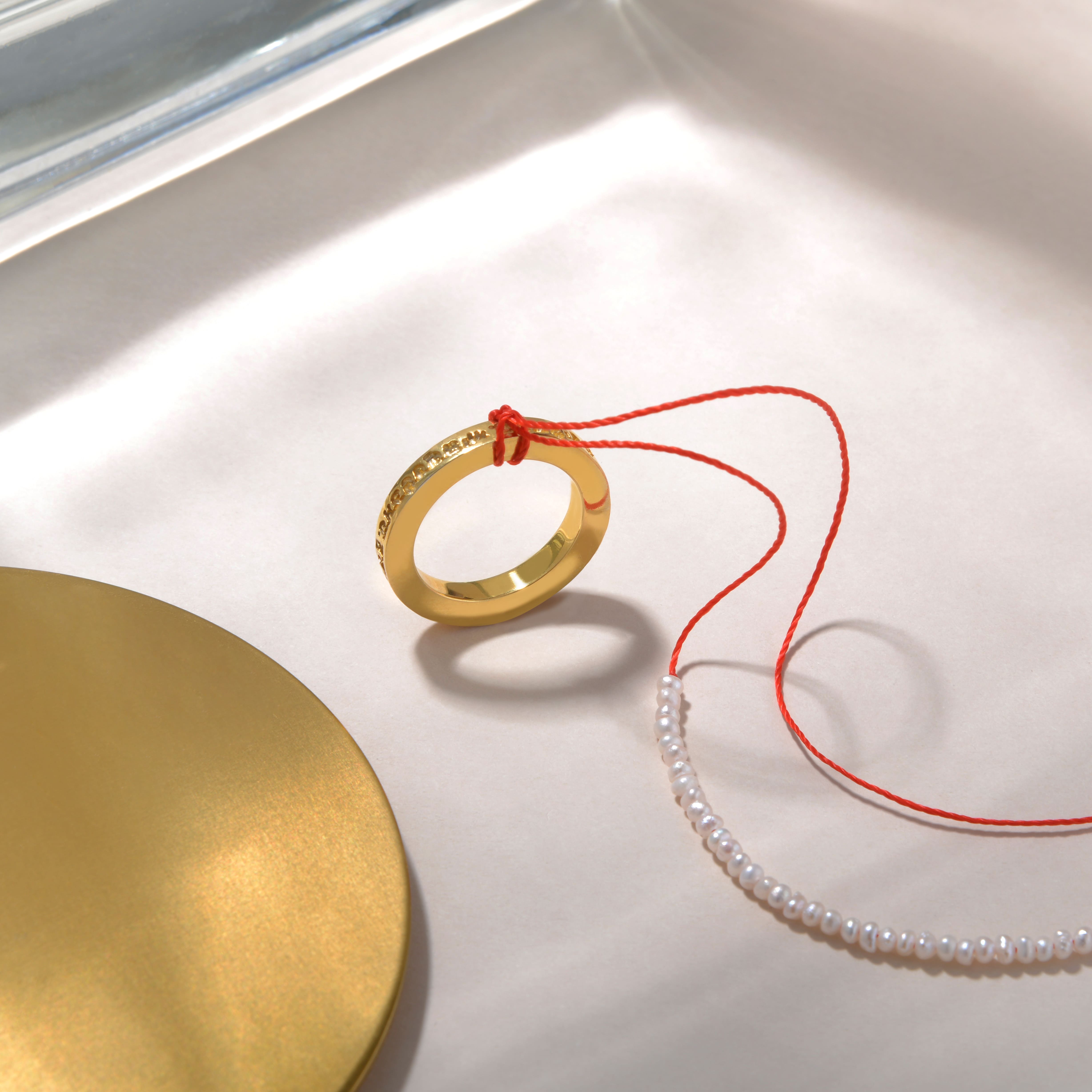 Подвеска с гравировкой и надписью - защитной мантрой, идущей по кругу кольца.