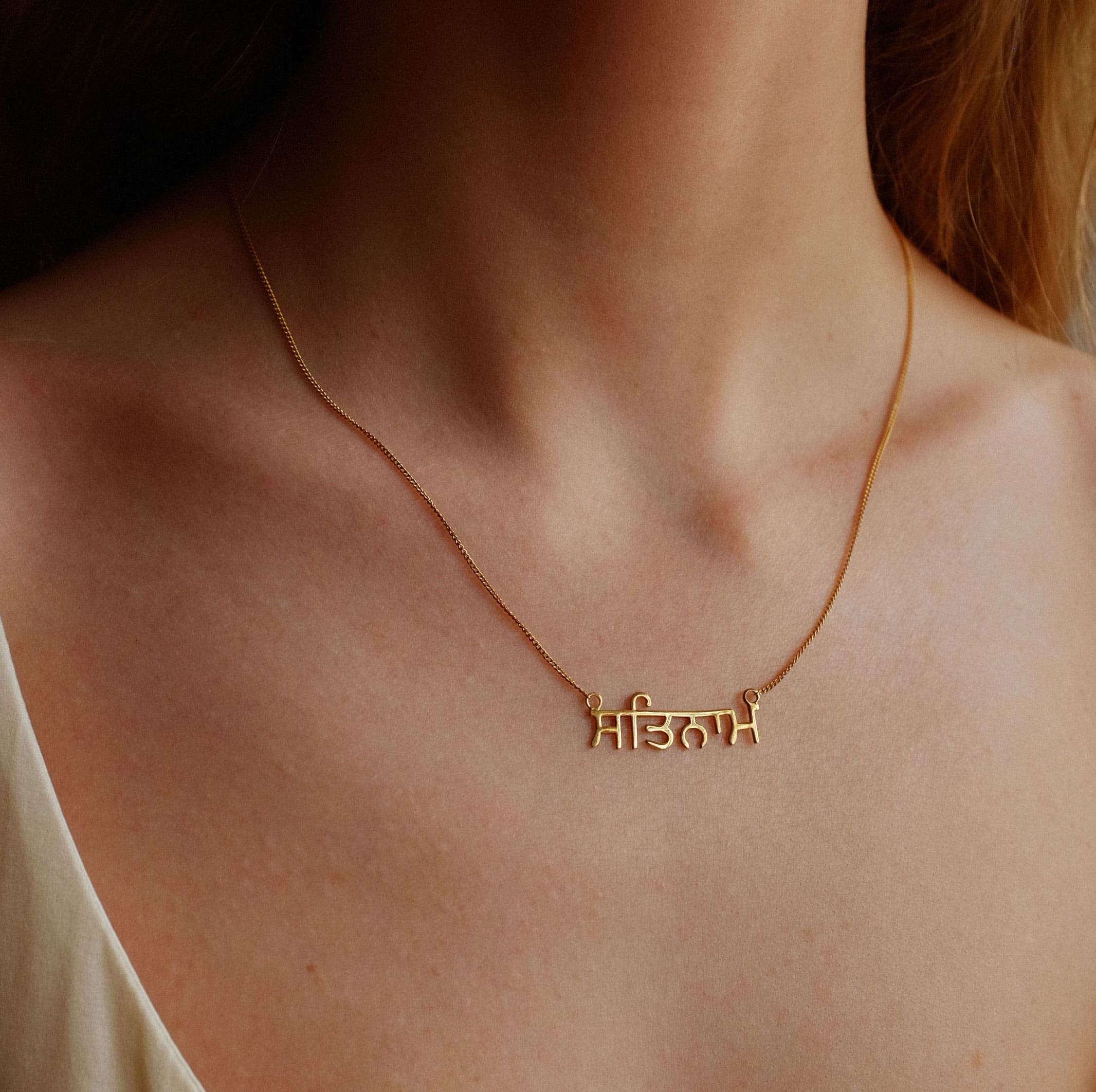 Подвеска 'Первозданный звук' с мантрой Сат Нам (Naad) на языке оригинала - гурмукхи - письменности индийского диалекта панджаби. Это мантра о том, что истинная природа всех людей едина.