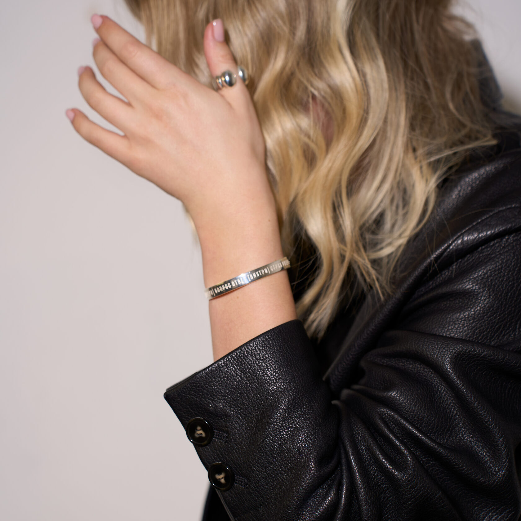 Всего один взгляд или прикосновение к браслету напомнит о внутренней силе, уверенности и смелости, которые есть внутри каждого из нас. О том что мы всегда можем "вычеркнуть" из своей жизни стыд, сомнения, страхи и сделать уверенный шаг вперед.