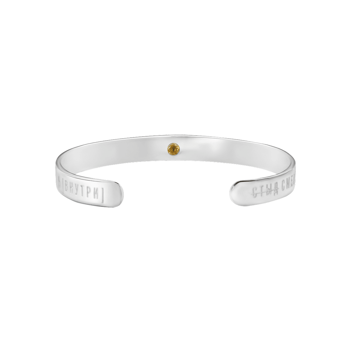 СТЫД СМЕЛОСТЬ [ВНУТРИ] ВОПРОС ОТВЕТ [ВНУТРИ] СТРАХ УВЕРЕННОСТЬ [ВНУТРИ] В каждом из них спрятан жёлтый цитрин, видимый только обладателю украшения. Всего один взгляд или прикосновение к браслету напомнит о внутренней силе, уверенности и смелости, которые есть внутри каждого из нас. О том что мы всегда можем "вычеркнуть" из своей жизни стыд, сомнения, страхи и сделать уверенный шаг вперед.