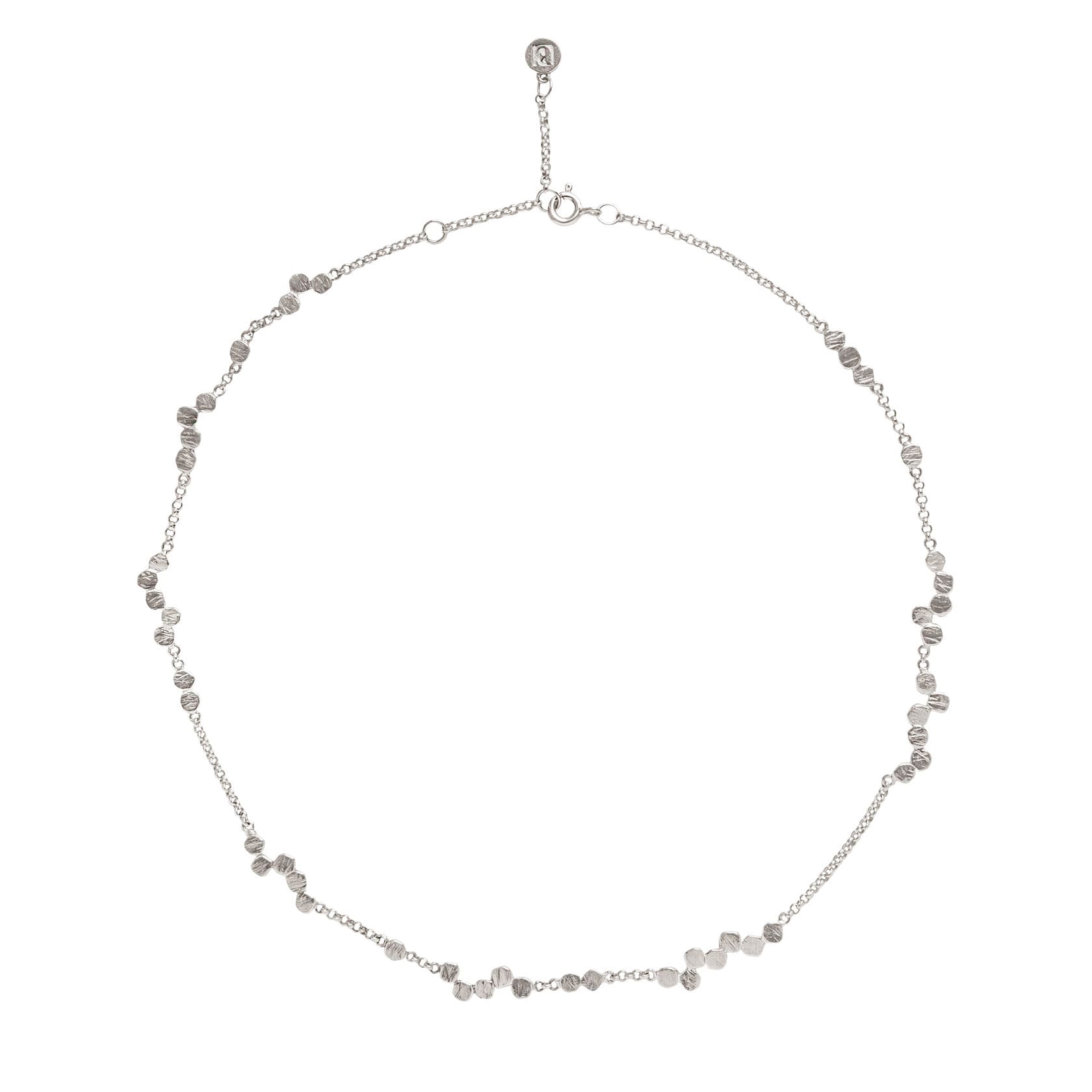 Колье из коллекции Конфетти, состоящее из цепочек и вереницы серебряных октагонов.