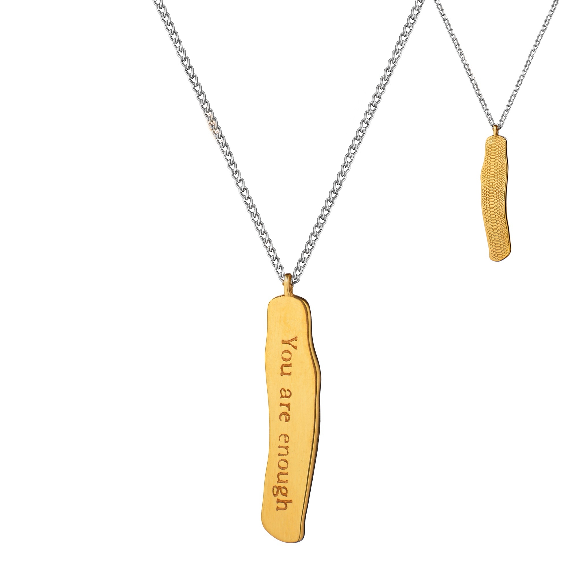 Подвеска Affirmation с надписью "You are enough"с одной стороны, и змеиным принтом гравировкой - с другой. Выполнена из серебра 925 пробы и покрыта золотом.