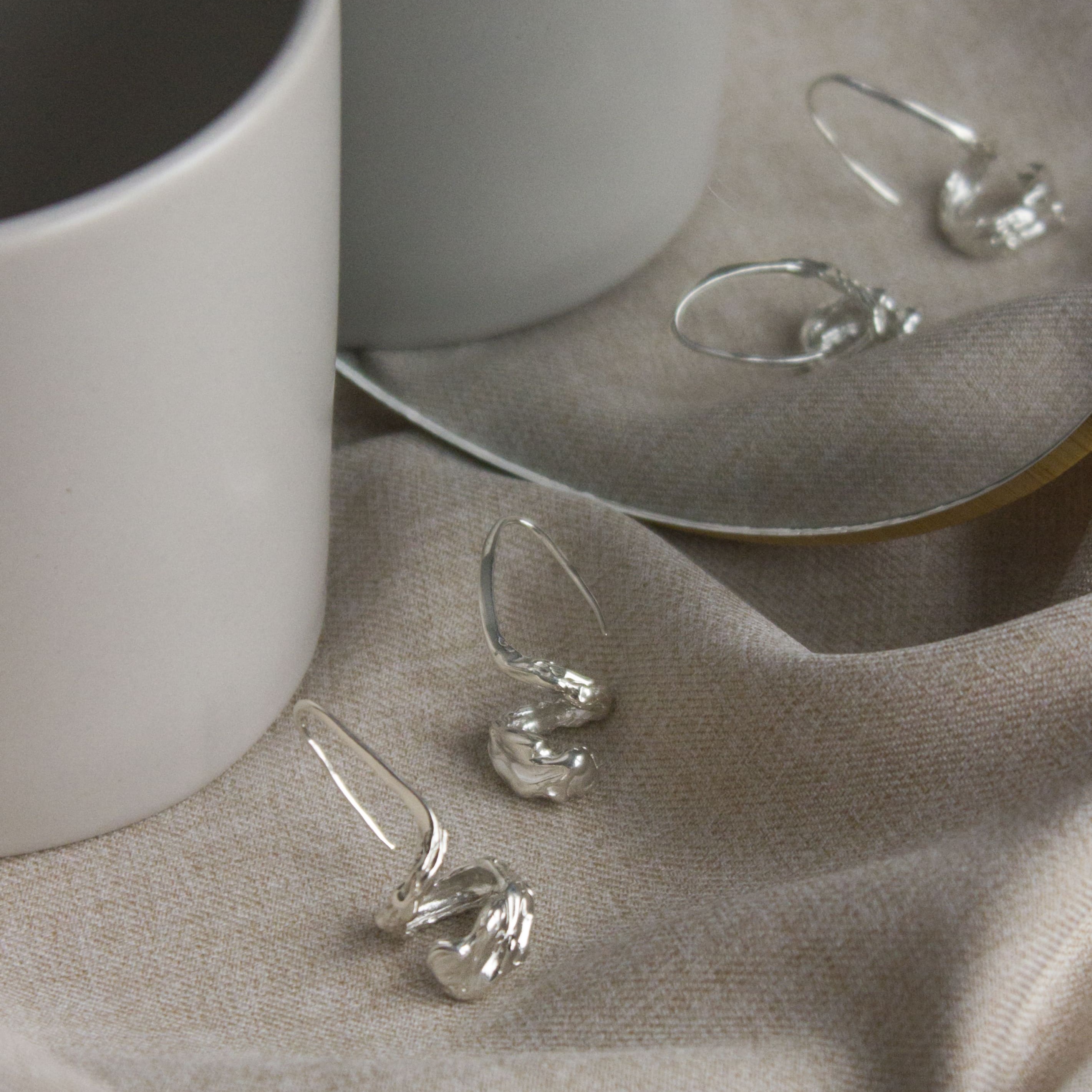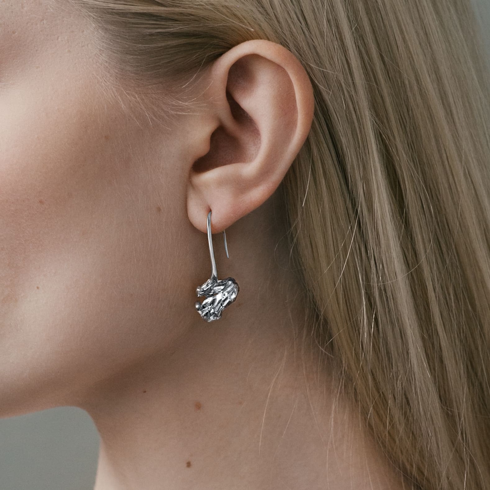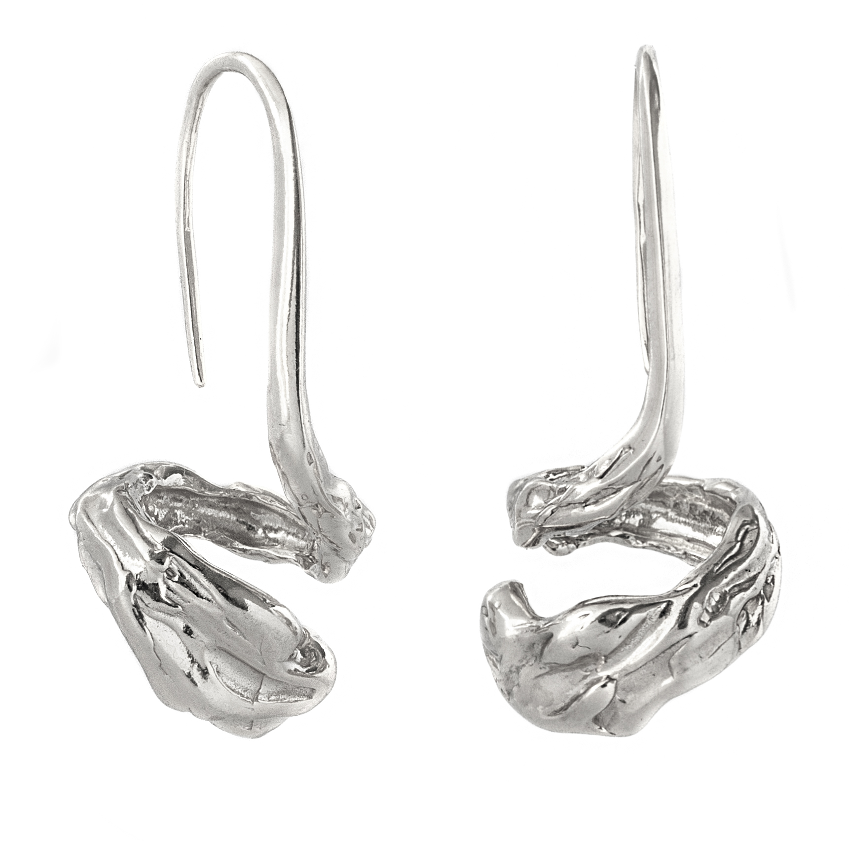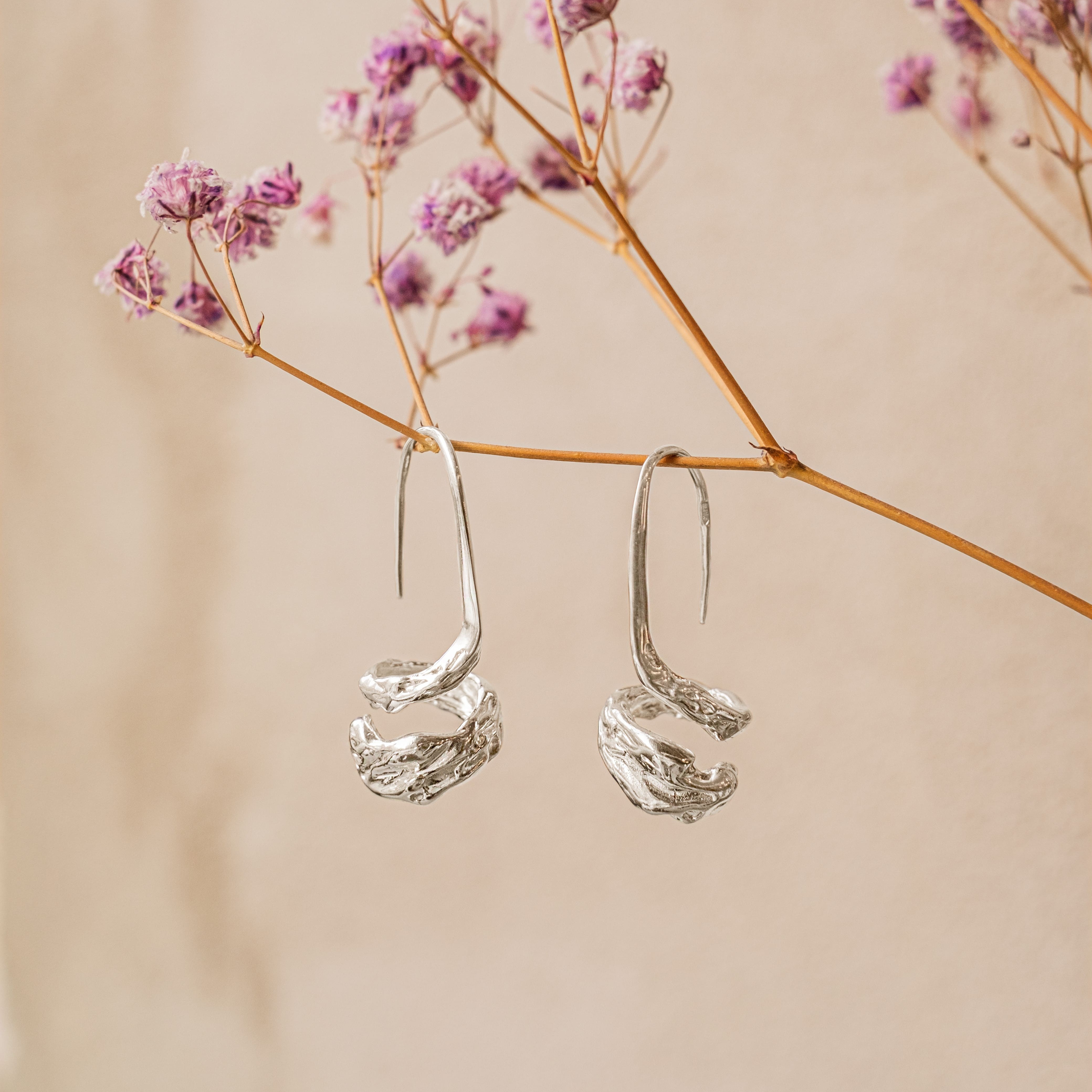 Длинные серьги в форме спирали. Фактурные, женственные, подвижные. Завитки не имеют застежек, но специально загнутая швенза-петля позволяет им надежно держаться.