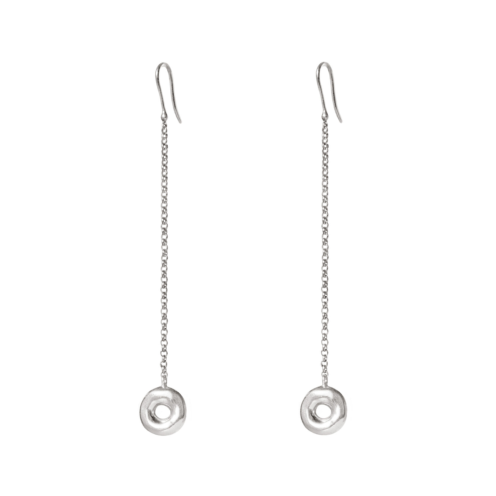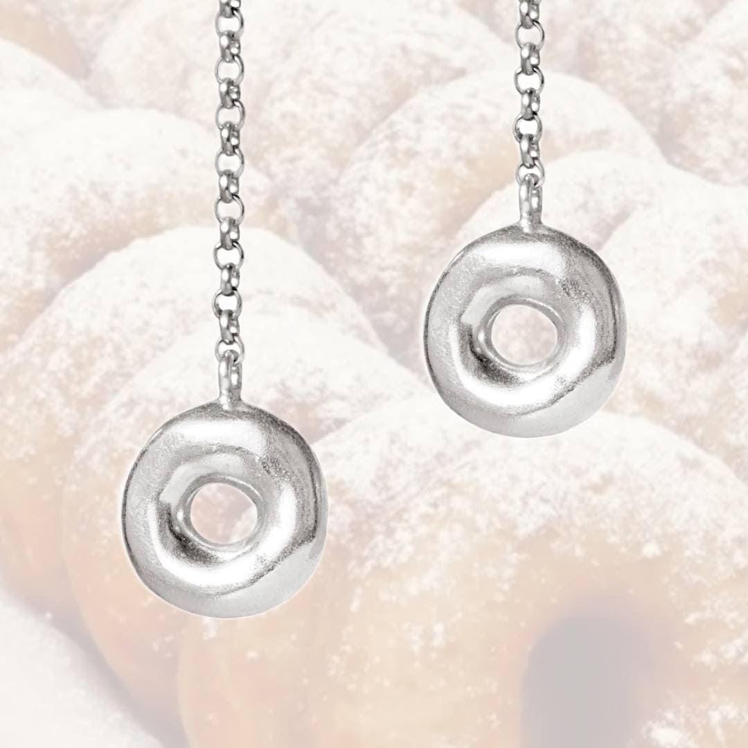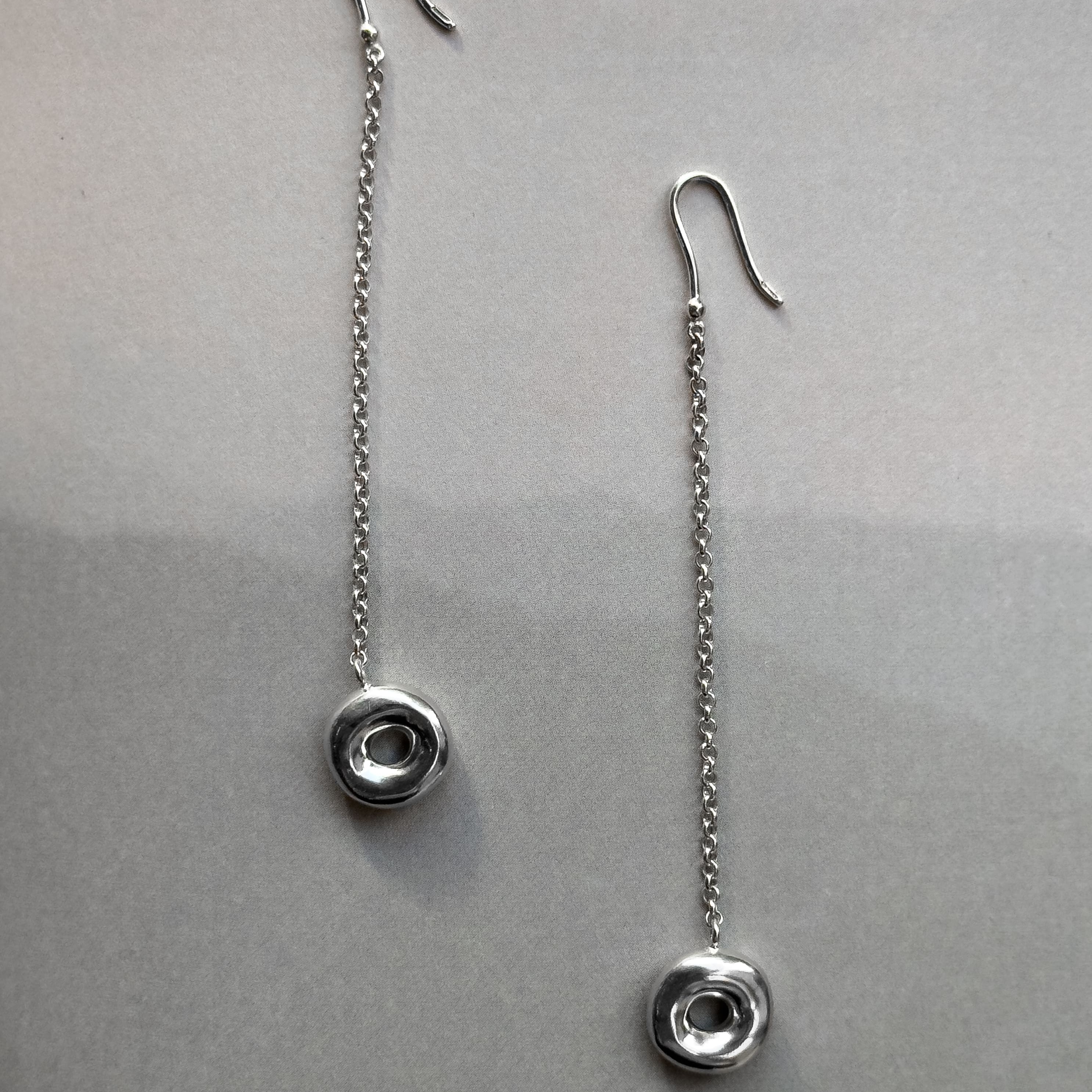 Длинные серьги с очаровательными миниатюрными пышками на цепочках. Маленький комфортный замочек, приятный вес.