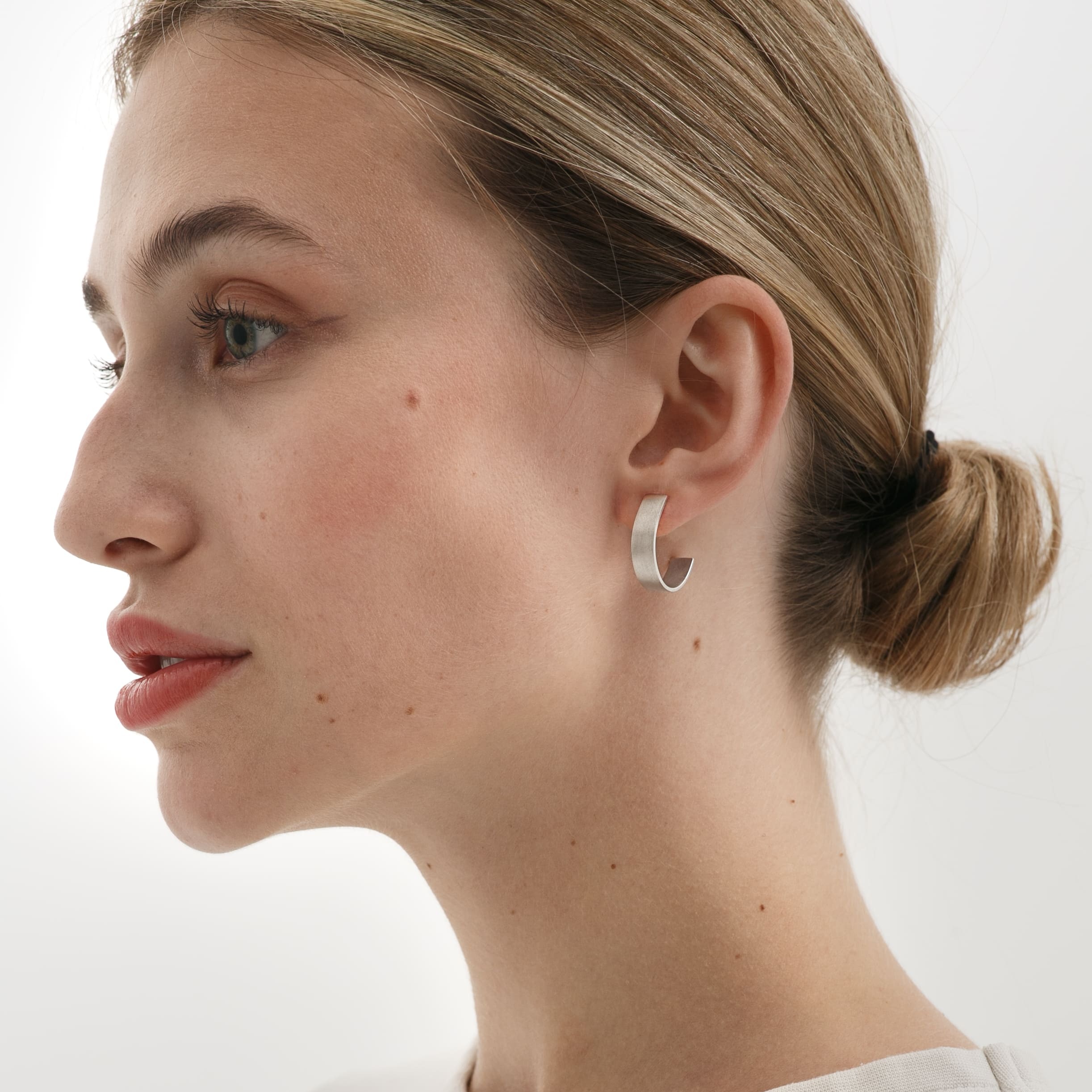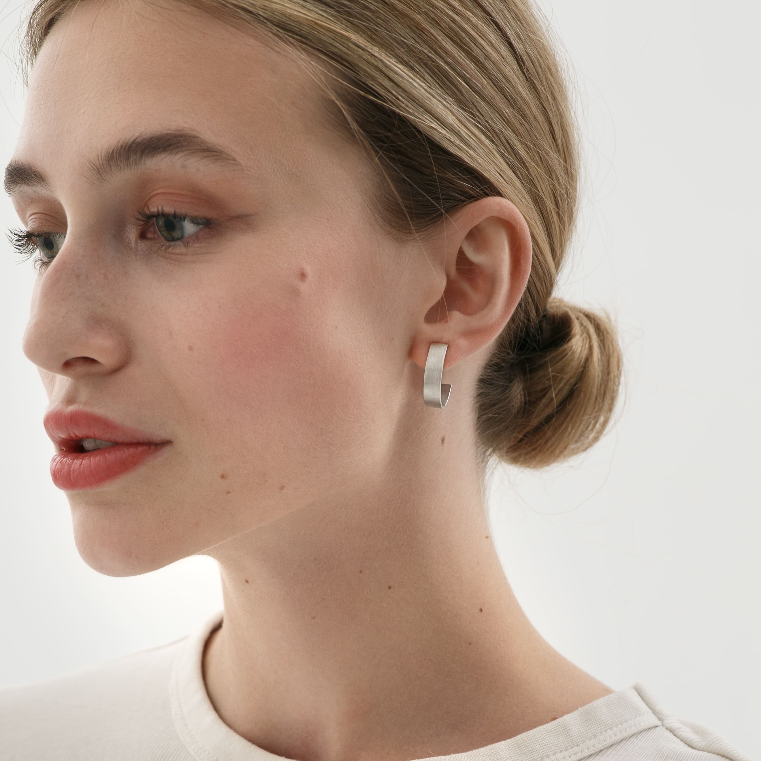 Простые и аккуратные серьги с матовой текстурой. Небольшой, но заметный размер и минималистичный дизайн делает их незаменимыми для каждодневного образа.