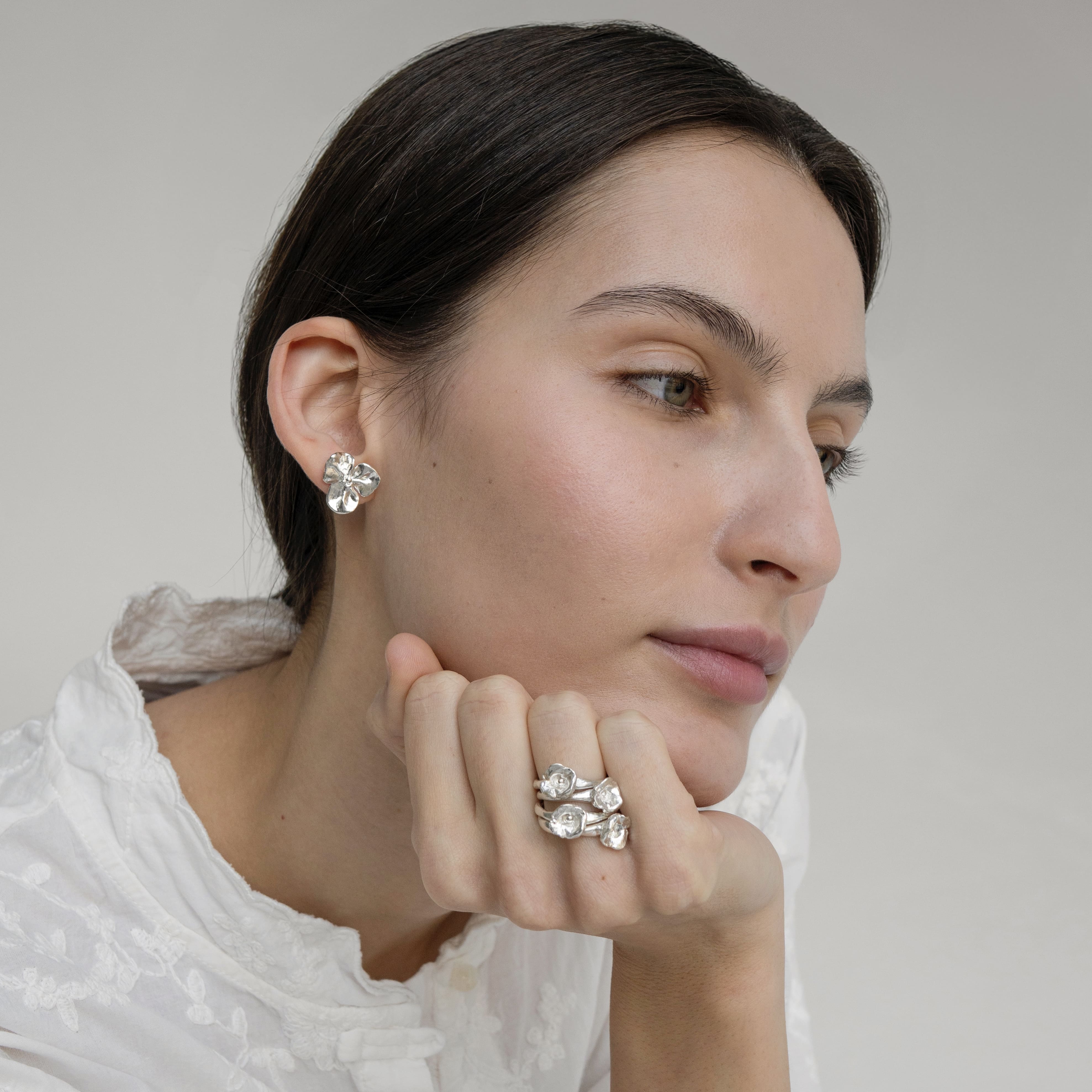 Серьга 'Цветок-Трехлистник' из коллекции, посвященной природе и энергии Алтая.